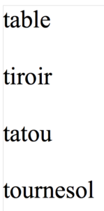 vous lui demandez de recopier les mots de la liste que vous avez écrite la veille.