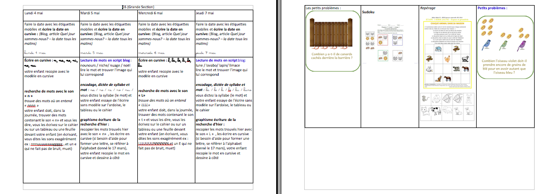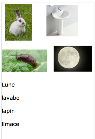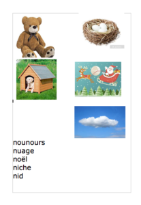 Vous lui demandez d’essayer de lire les mots et de mettre ces mots sous les images qui correspondent. Il est important de le laisser s’organiser seul, toutes les erreurs sont permises, il prend tout le temps nécessaire. la première fois qu’il fait ce travail, vous pouvez rester près de lui pour le guider s’il vous le demande. Insistez bien sur le fait qu’on sait bien qu’il ne sait pas encore tout lire, qu’il fait ce qu’il pense être bon et qu’on vérifiera après ensemble. Quand votre enfant dit qu’il a fini, vous lisez les mots et il vérifiez ensemble si l’image est bien celle qui correspond.