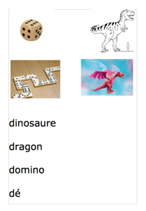 Lui demander de faire un dessin d’un des mots à côté du mot (pour travailler sur le sens, car lire, c’est faire du sens)