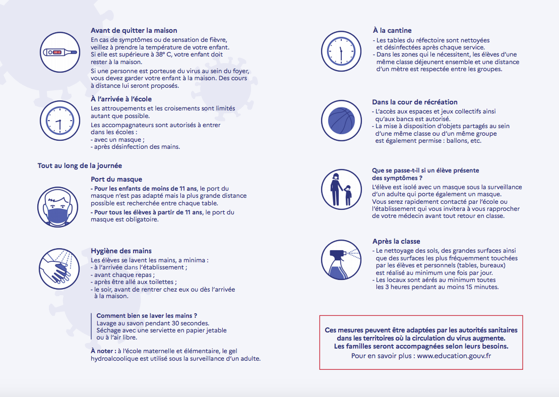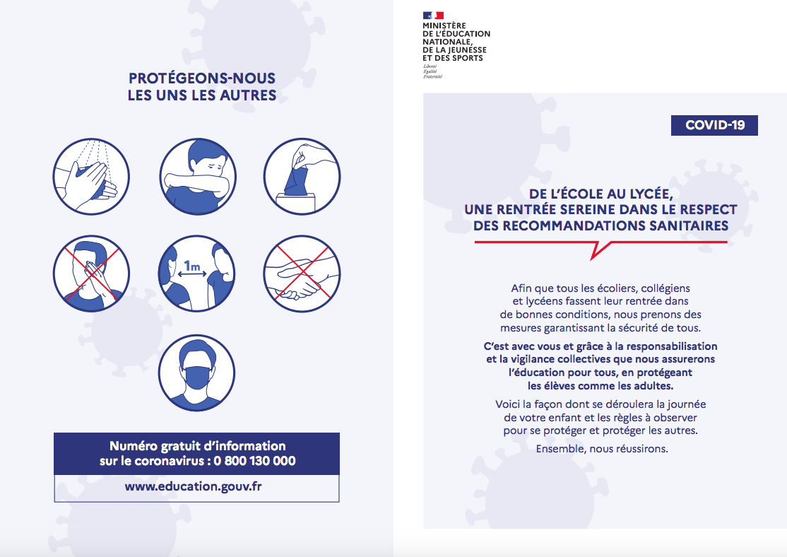 Vous trouverez ci-dessous le protocole sanitaire du ministère de l’éducation pour la rentrée 2020 :
