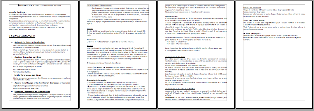 Si nous devions mettre en place un autre protocole sanitaire ou fermer les écoles comme en mars dernier, nous vous informerons rapidement et nous mettrons alors en place un plan de continuité pédagogique.
