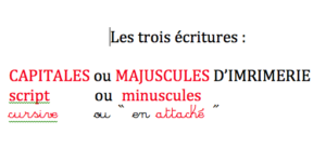 Le script sert à lire (comme ici sur l’ordinateur) et en France, on n’apprend pas aux enfants à écrire en script, on leur apprend à lire l’écriture script des livres (mais en Angletterre, USA, Canada… les enfants apprennent à écrire en script et n’ont pas l’écriture cursive)