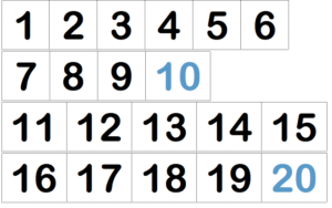 soit les nombres écrits en chiffres : 1, 2, 3…, pour travailler sur la mémorisation des mots-nombres (apprendre à lire les nombres écrits en chiffres)
