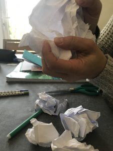 verser de l’eau – découper du papier- colorier – froisser du papier- taper sur le clavier de l’ordinateur