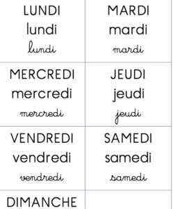temps 2 : préparer les étiquettes des jours (vous pouvez les écrire vous même ou les faire écrire à votre enfant.