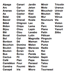 Vous avez aussi la possibilité de travailler en encodage, dans ce cas vous proposez l’image et donnez une ardoise effaçable à l’enfant ou son cahier, ou une feuille et il essaie d’écrire le mot que vous lui dictez (prenez les mots de la liste car ils ne comportent pas de lettres muettes ni de difficulté.