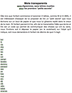 Bien sûr, on ne choisira que les mots les plus simples au début, ceux n’ayant pas de sons composés (ou, oi, en in, on…)