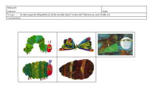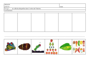 PS et MS : on aide l’enfant à mettre en colonne les jours de la semaine dans l’ordre et on lui demande s’il veut réécouter l’histoire avec les images de nourriture devant lui. on n’hésite pas à mettre l’histoire en pause pour qu’il prenne ses images et les place.