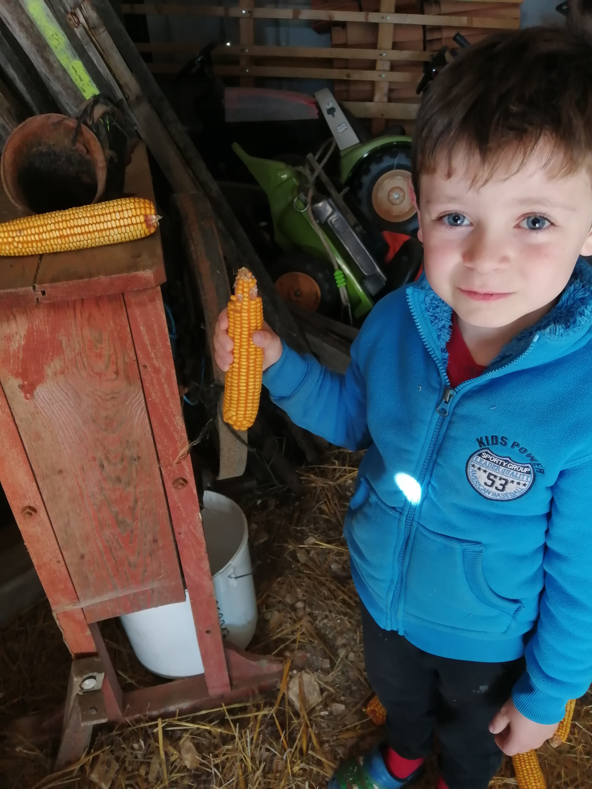 Il égraine les épis de maïs.