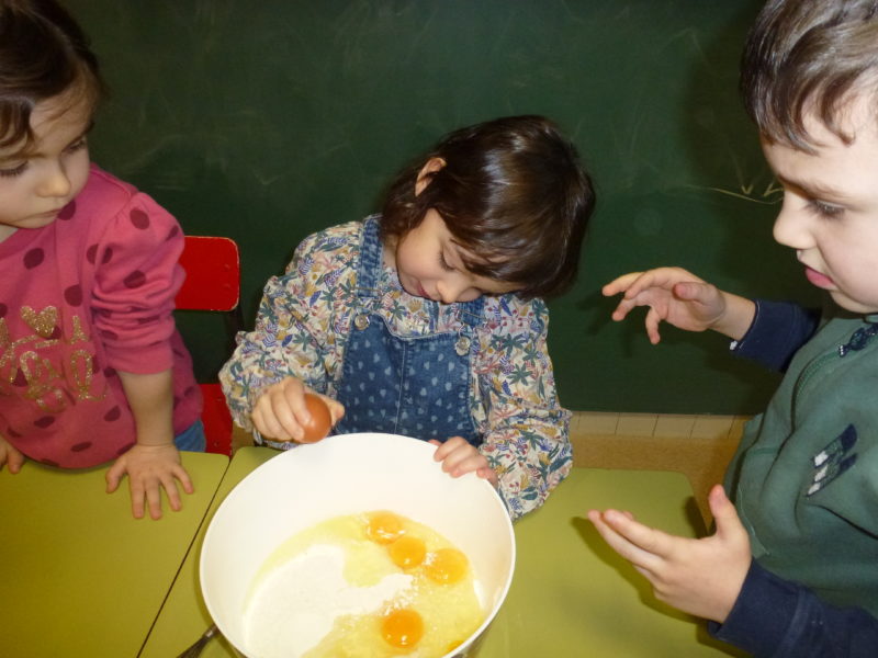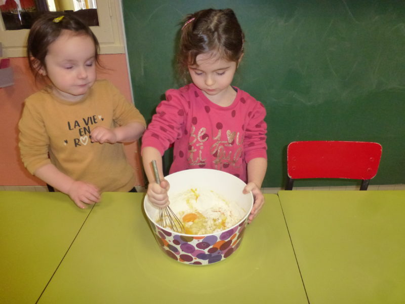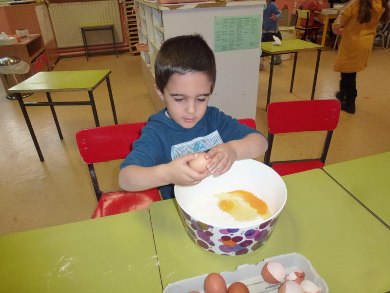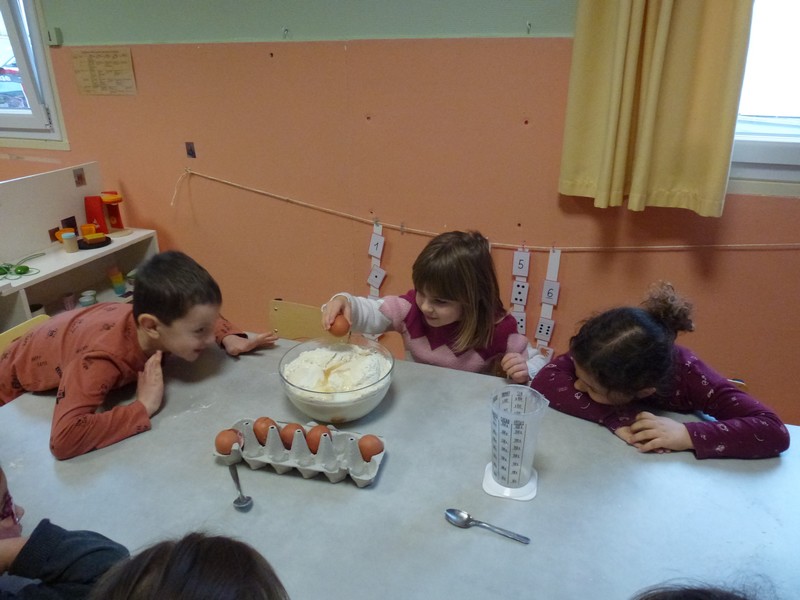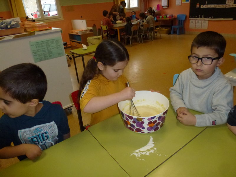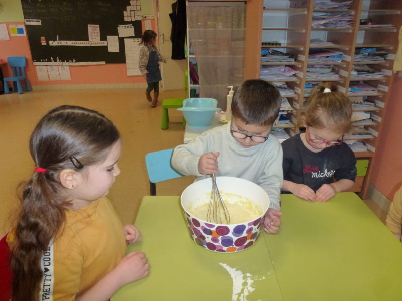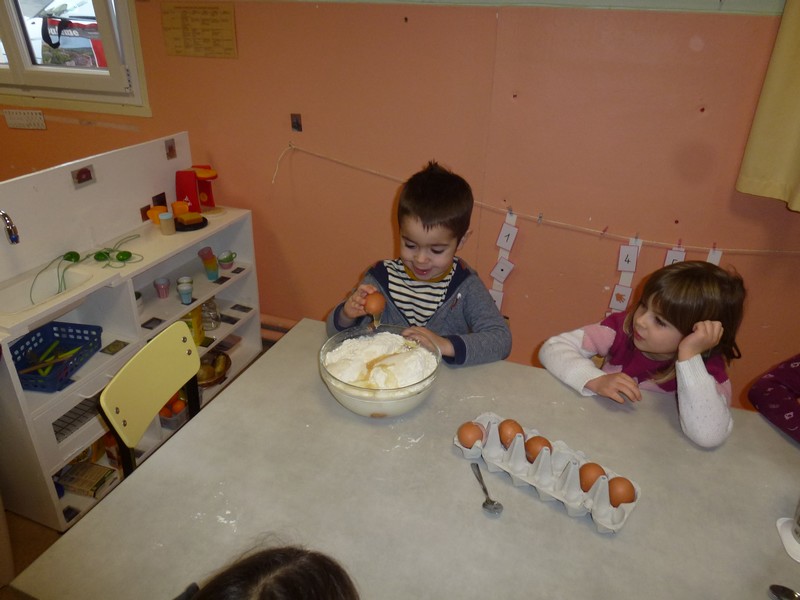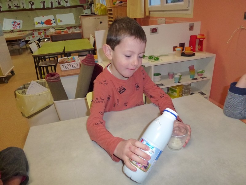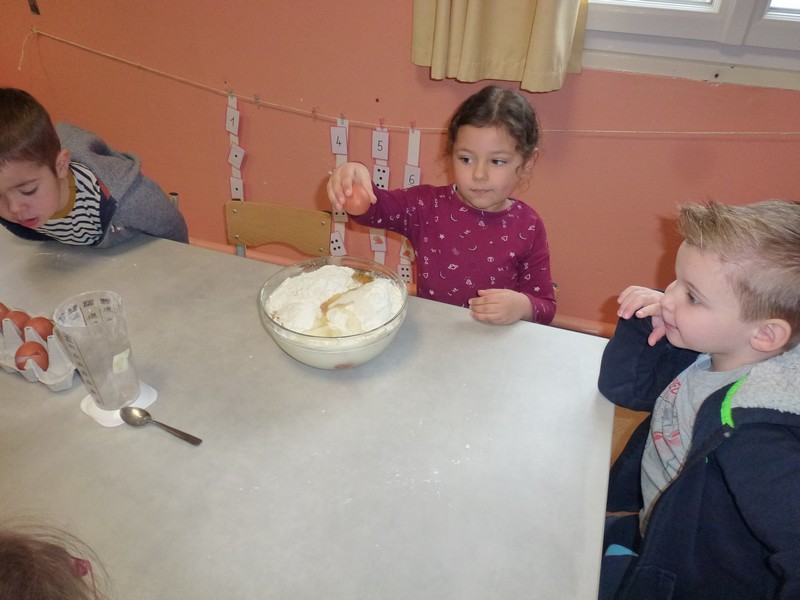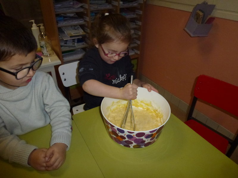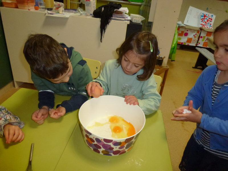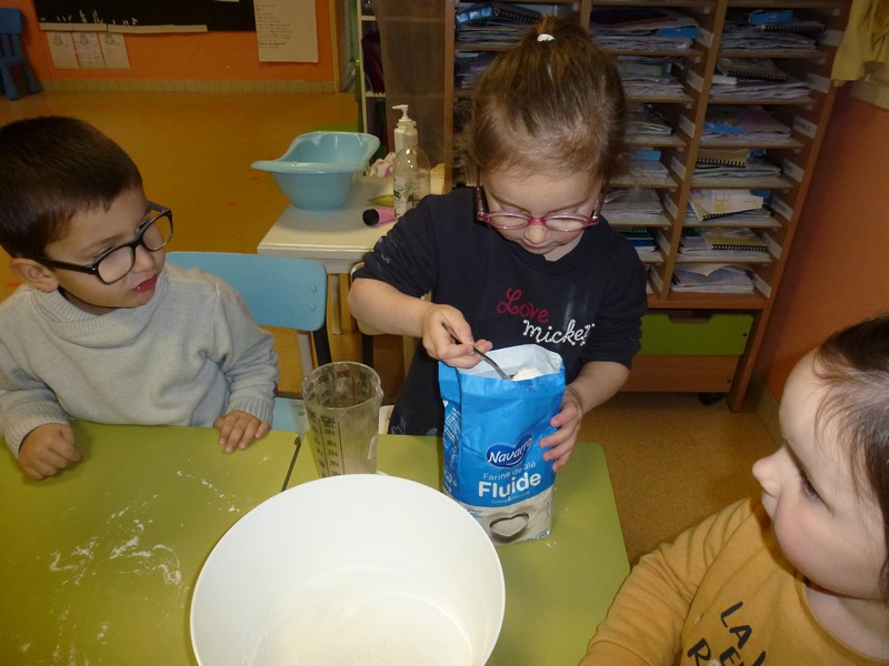 Nous mesuré la quantité de farine et de lait qu’il fallait puis nous les avons mis dans le saladier avec les oeufs et le sucre vanillé.