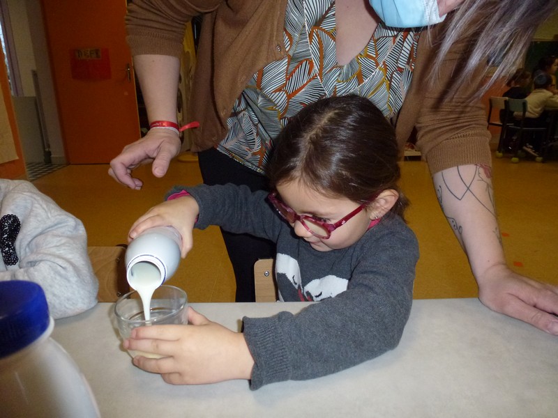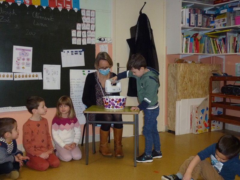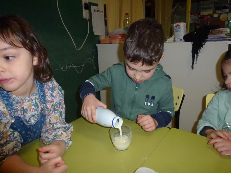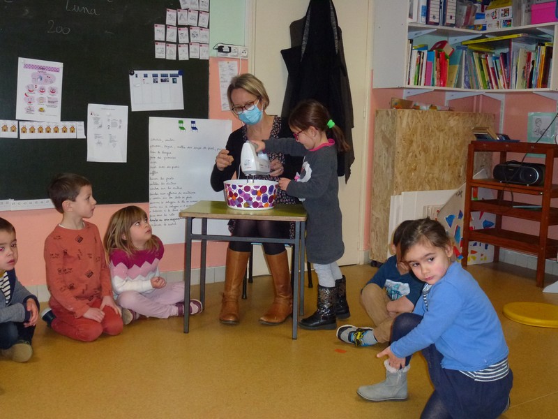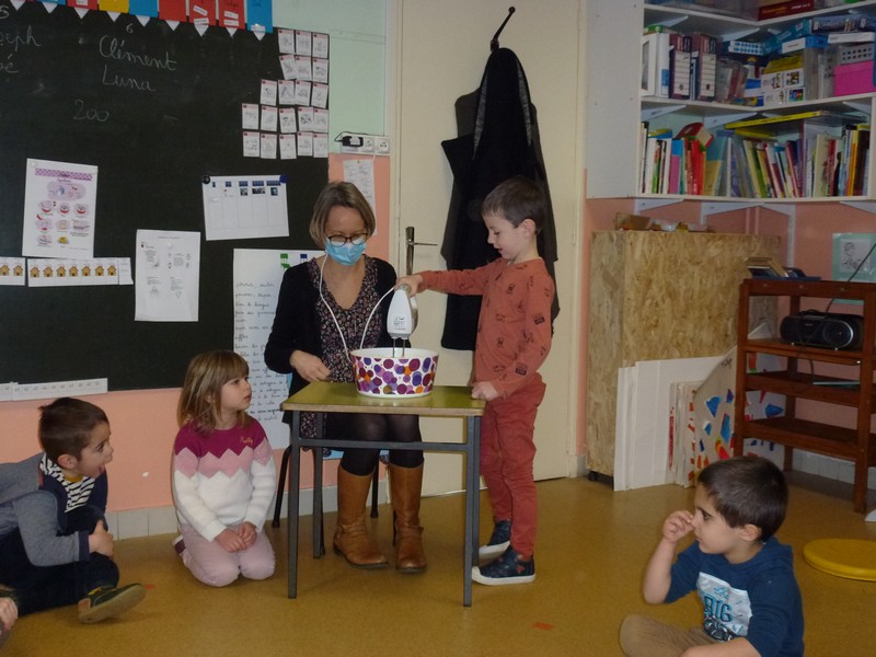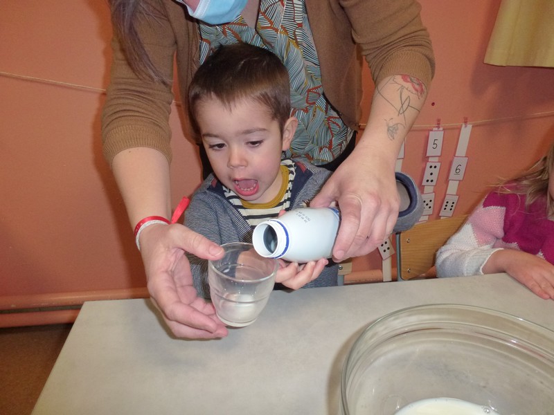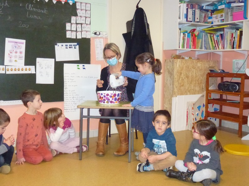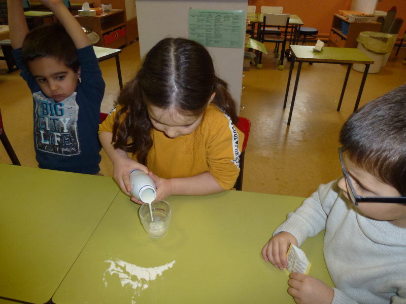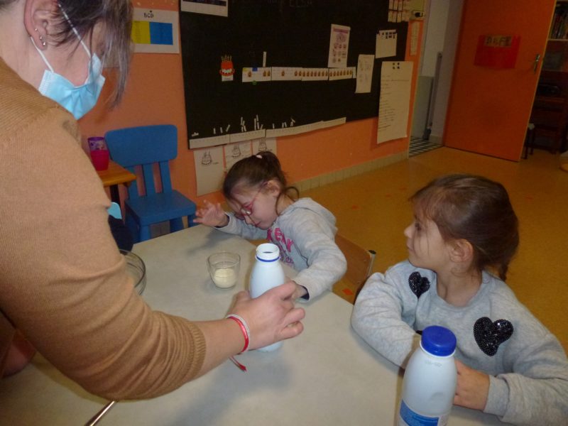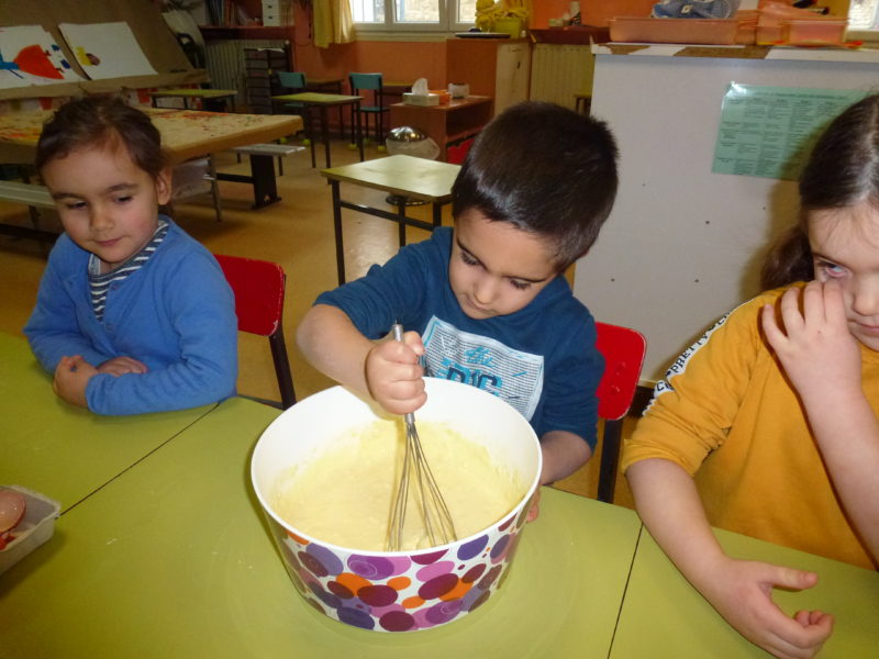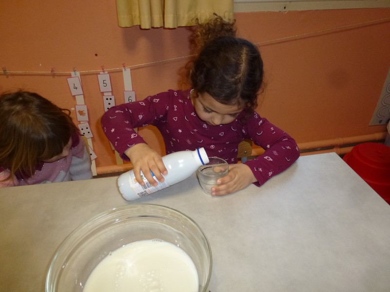 Nous mesuré la quantité de farine et de lait qu’il fallait puis nous les avons mis dans le saladier avec les oeufs et le sucre vanillé.