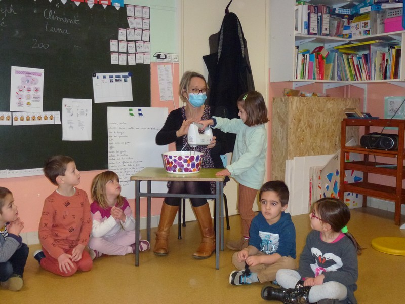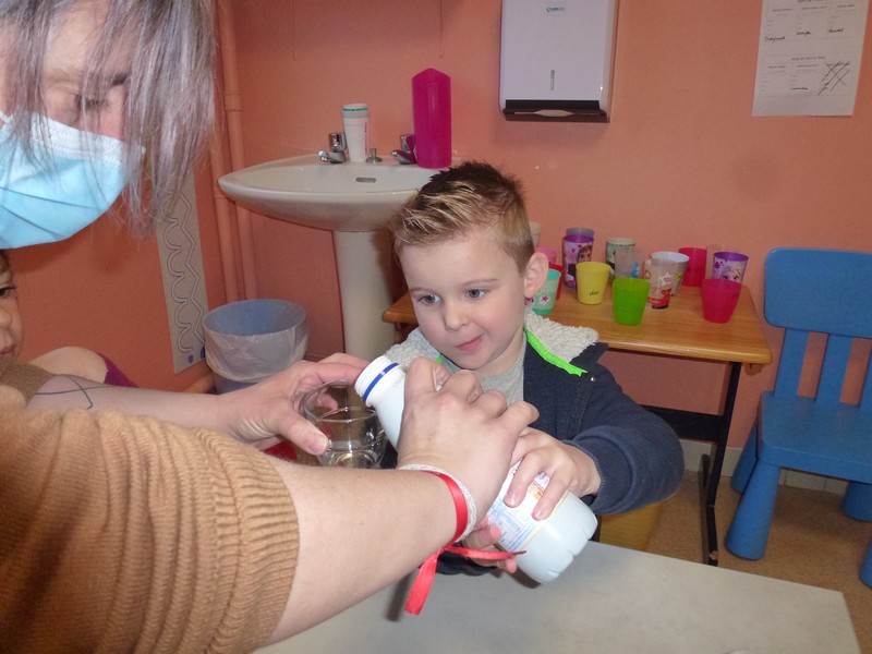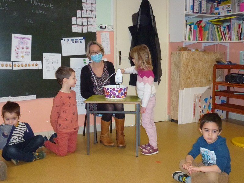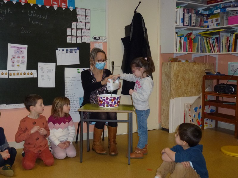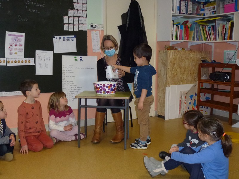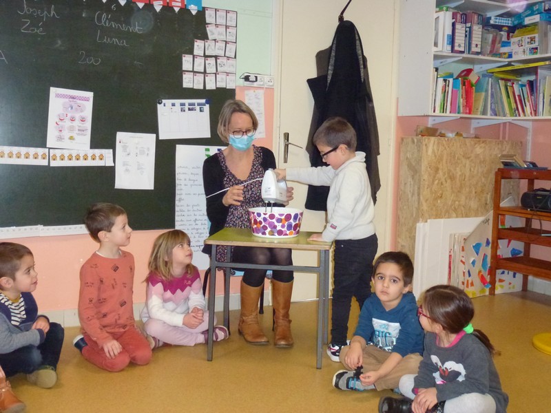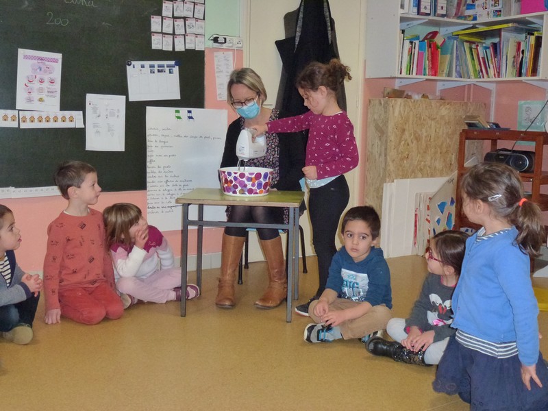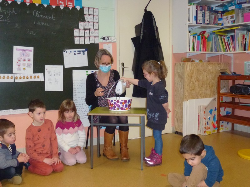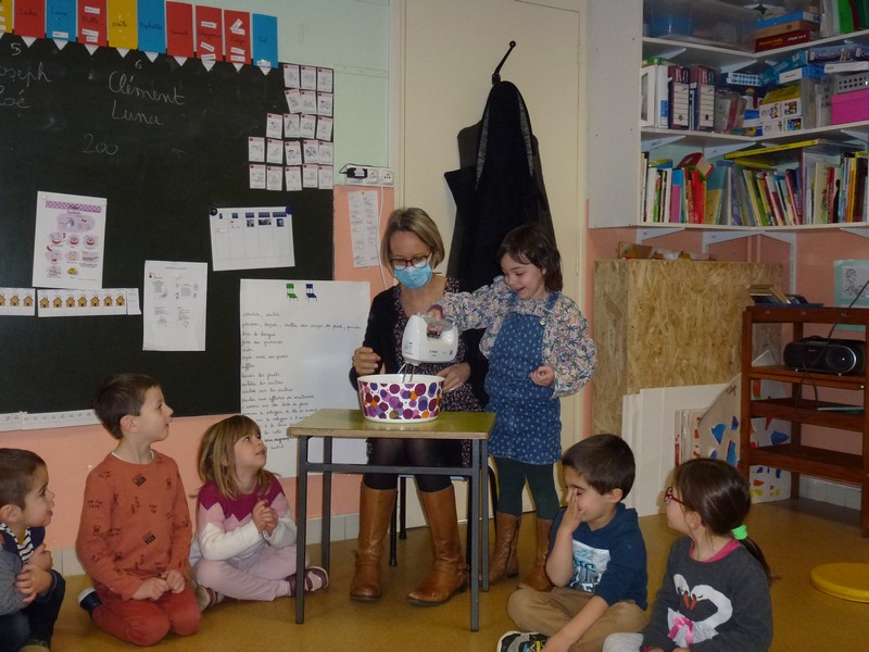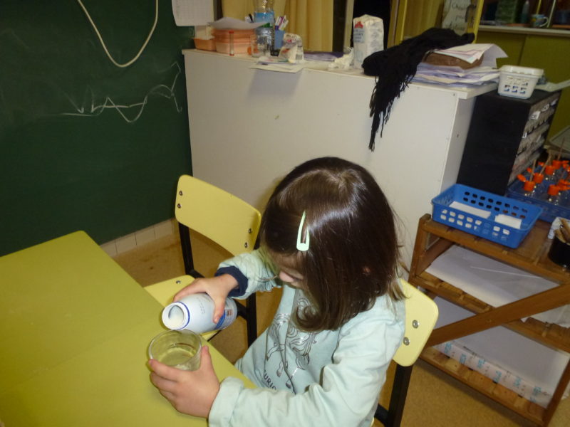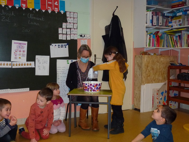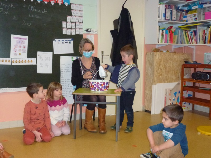 Nous mesuré la quantité de farine et de lait qu’il fallait puis nous les avons mis dans le saladier avec les oeufs et le sucre vanillé.