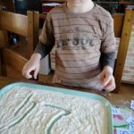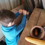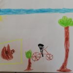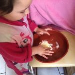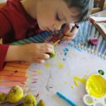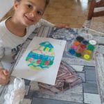 Aujourd’hui, Abel est resté à la maison à cause de la pluie. Il a fait un bel œuf en peinture.
