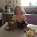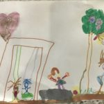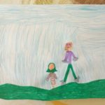 Elle a aussi dessiné son moment préféré du week-end:”jouer dehors avec sa sœur quand il fait beau et qu’il n’ y a pas de vent. ”