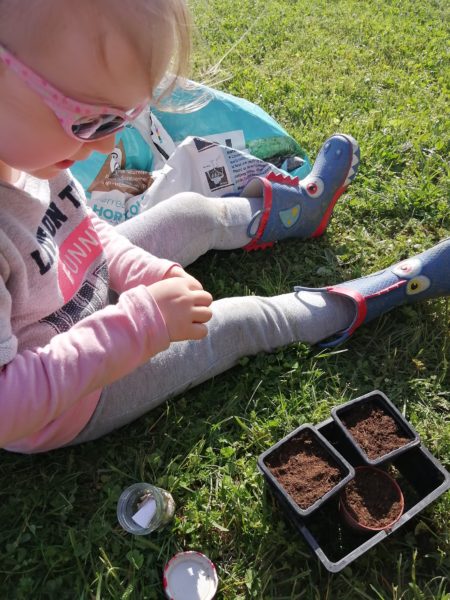 Semis de graines de tomates et de courgettes.