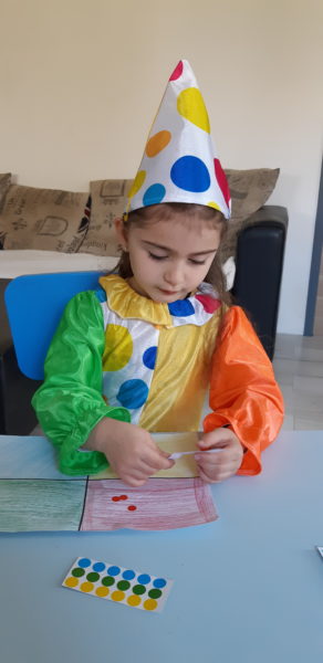 Collage de gommettes par couleurs, reconnaissance des couleurs.
