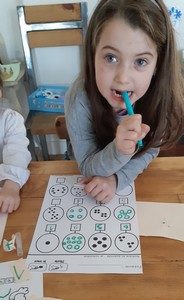 Elle a travaillé avec les chiffres, les reconnaître, les écrire, compter, construire une collection.