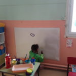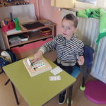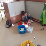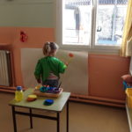Chaque enfant a sa “petite maison” avec son matériel (feutres, papier, ciseaux colle…) et des jeux qu’il a choisi mais attention on ne doit pas se les prêter.