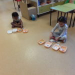 Nous avons trié les objets en fonction de leur forme (rond, carré, rectangle, triangle), nous avons trié les mots qui commençaient pas “é” ou par “ba”.