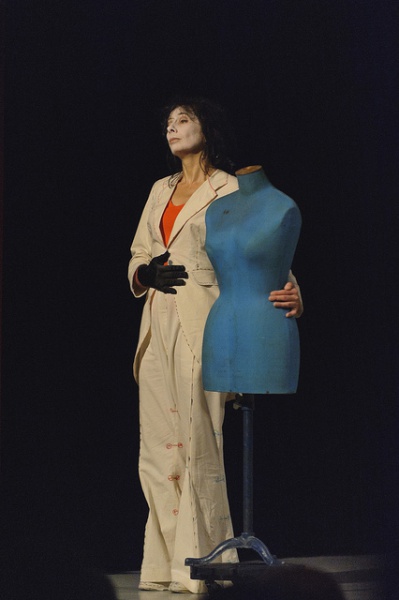 Dans cette pièce, le moment du spectacle qui m’a le plus marquée est la fin. Les trois couturières sont en train de jouer L’Avare lorsque les sirènes de la police retentissent. Alors, les deux comédiennes qui jouent la couturière la plus jeune et la plus vieille quittent la scène, leurs affaires sous leurs bras. Elles appellent la dernière pour qu’elle s’enfuie avec elles. La troisième, celle qui fait Harpagon et qui est restée sur scène, continue à jouer. Elle est à genoux sur une marche, habillée d’une blouse blanche, le visage maquillé en blanc; les lumières se sont presque toutes éteintes. La comédienne ne bouge pas et récite son texte avec ardeur pendant que ses amies l’appellent en vain. J’ai choisi ce moment car il m’a un peu effrayée. Le personnage était beaucoup plus inquiétant que je l’imaginais et cela m’a surprise. J’ai eu l’impression que la couturière était devenue folle.
