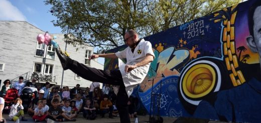 Y’en a quelques-uns… Les aléas des intempéries… Jouer dans le froid, sous la pluie, dans un courant d’air, sur un sol trempé sur lequel tu peux te blesser… Ça, ça peut devenir épuisant physiquement et psychologiquement. Tu n’es pas protégé comme dans une boite noire. Il faut t’installer avec ton décor parfois c’est lourd, t’es épuisé avant même d’avoir joué. Parce qu’en rue, tu mets la main à la pâte sur tout. Et en plus, quand tu diriges une compagnie, tu dois être au taquet, vigilant depuis la mise en place jusqu’à la fin du jeu en passant par la gestion de ton équipe et gérer tout en amont et en aval. Mais ça, c’est pour tous les directeurs de compagnie, rue ou salle. Je crois que c’est le manque de confort parfois qui est rude mais ça fait partie du jeu et du choix surtout de jouer en espace public.
